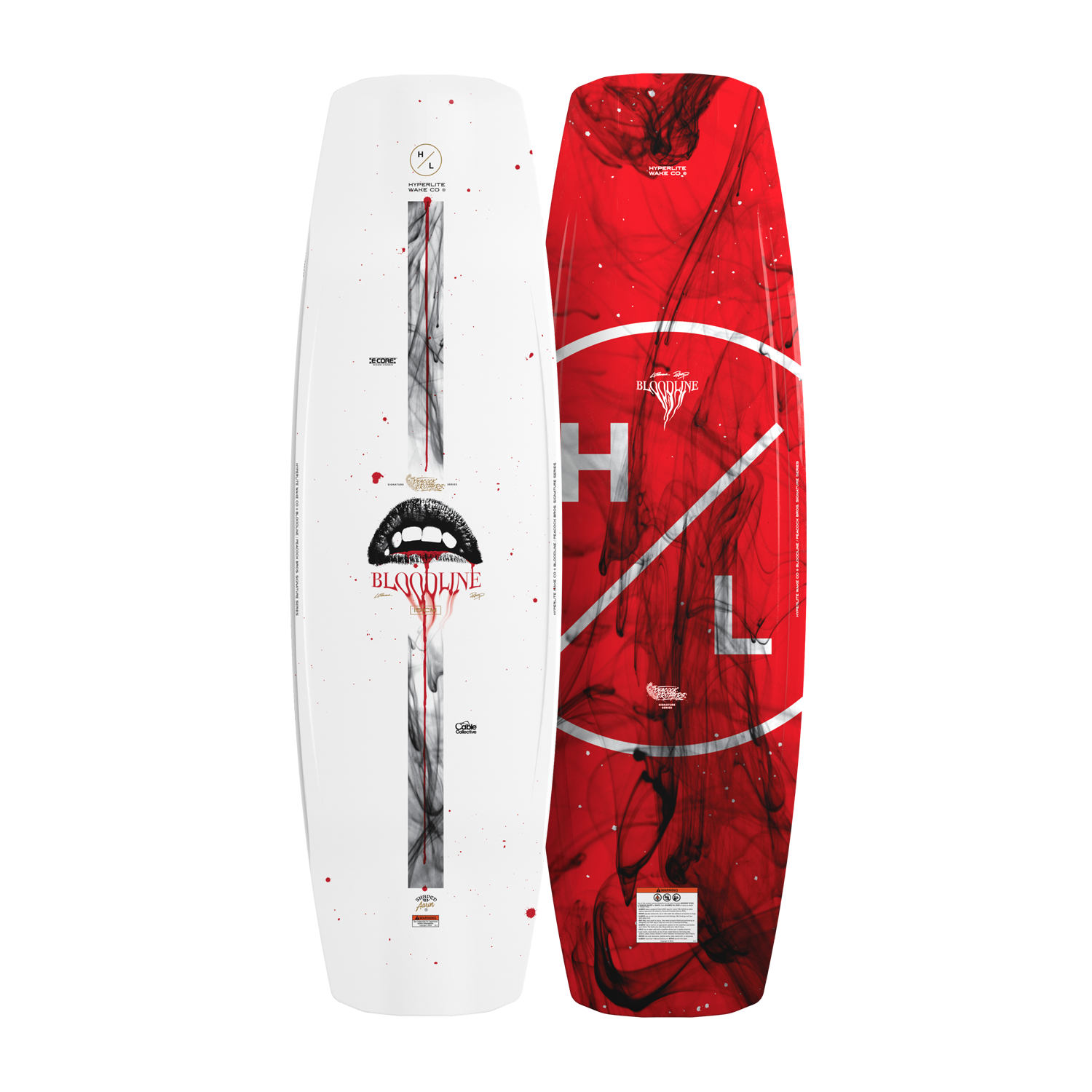 Hyperlite signed Ryan & Liam Peacock a couple years ago with the intent of letting them design their own cable board, after some toiling & tinkering the Bloodline was spawned. Working with Aaron Stumpf they’ve created a shape for the ages. The Bloodline has a thinner profile making landings super easy on the body and the thickness provides enough rigidity so soft landings are still solid, reducing slip outs on the tail. Grab Rails running the length of the stance area deliver a controlled flex between your feet and allow the tip and tail to flex a bit more flex for presses. The abrupt continuous rocker provides a fast board on the water and adds to that exquisite flex pattern sought by the Peacock Bros.